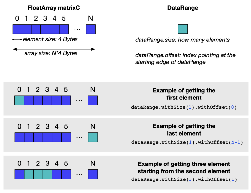 executionResult.transferToHost(dataRange.withSize(1).withOffset(0));An example of this API call is shown in one of the TornadoVM unit-tests, here. Several variations of the above code snippet are shown in the following image.